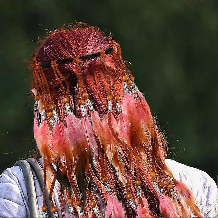 Boho Feather Hairband Gradient Pink Headpieces Bohemian Headband Gypsy Headdress
