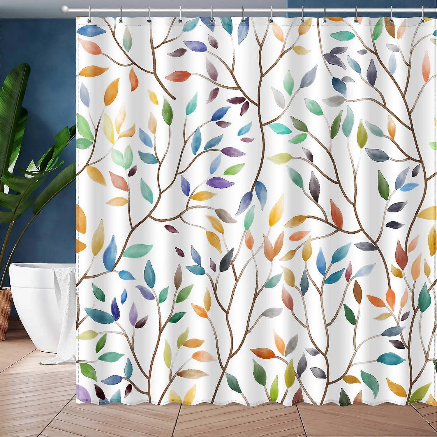 Boho Leaf Floral Shower Curtain 72"W x 72"L, Colorful Botanical Leaves Fabric for Modern Bathroom Decor
