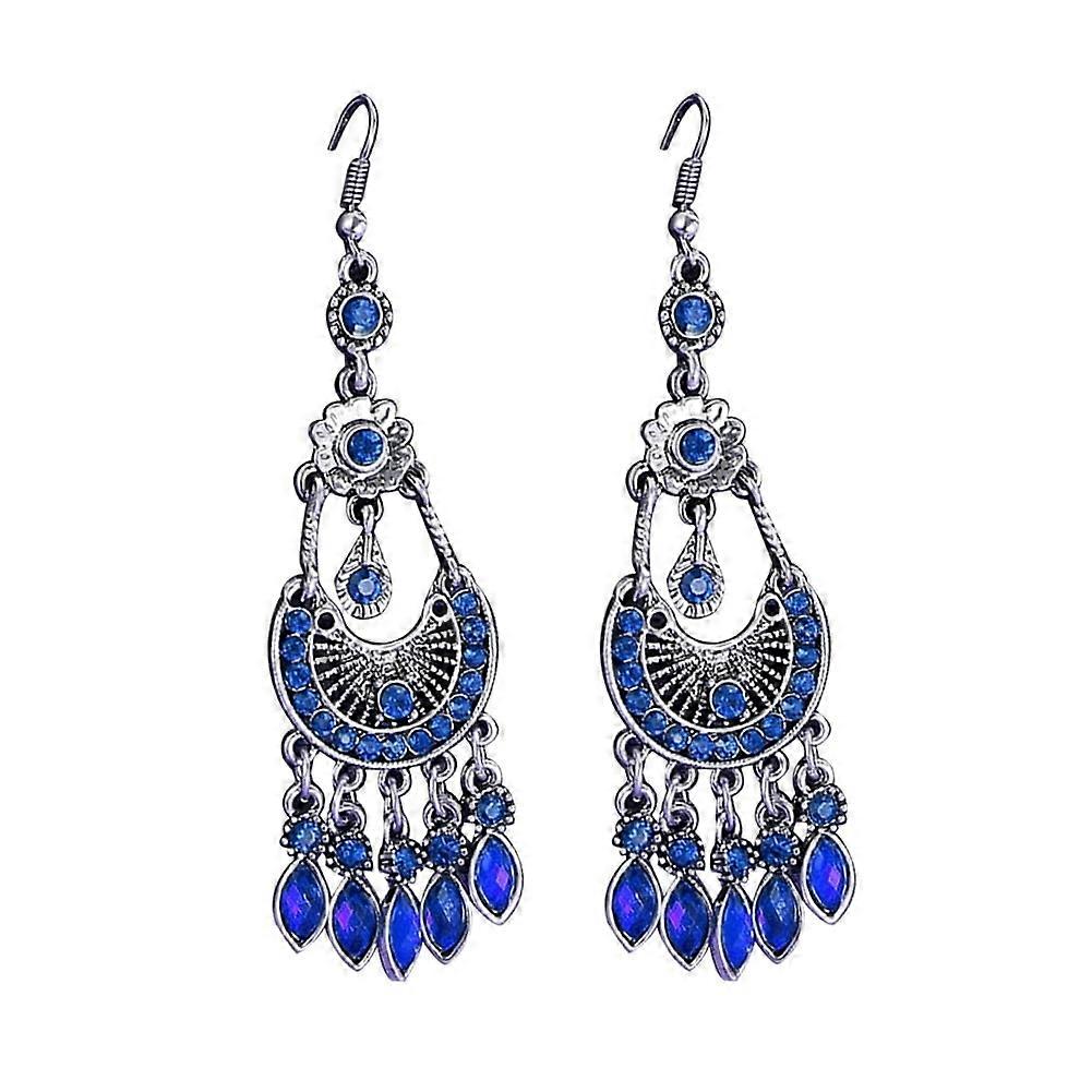 Bohemian Women Rhinestone Crescent Moon Long Fringe Hook Earrings Jewelry Gift