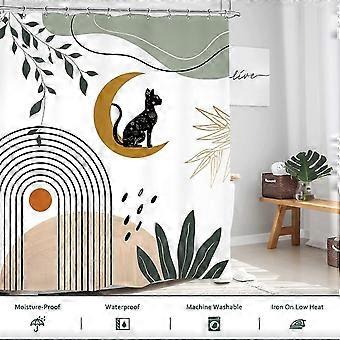 Boho Black Cat Shower Curtain 60Wx72L Inch Central Century Modern Minimalist Moon 2025