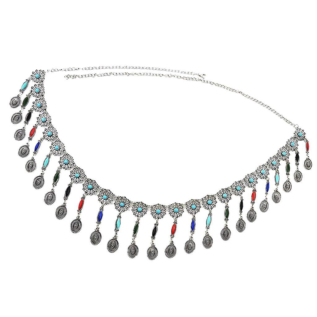Bohemia Alloy Flower Tassel Colorful Gemstone Waist Chain Bikini Belly Chain