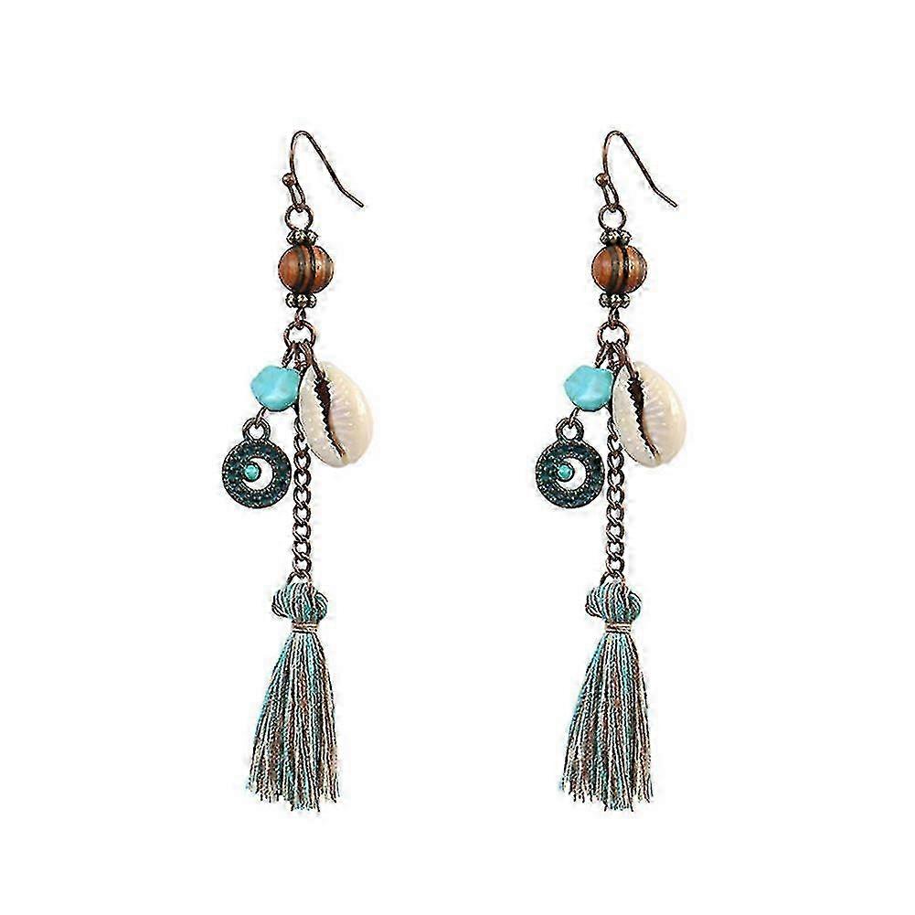 Bohemia Women Faux Turquoise Shell Tassel Long Dangle Hook Earrings Jewelry Gift