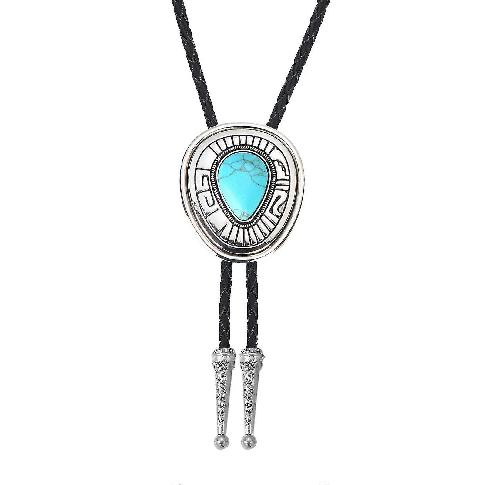 Bolo Tie for Man Evening Party Necktie with Color Gemstones Pendant Gentleman Formal Meeting Discotheque Party Supply Blue