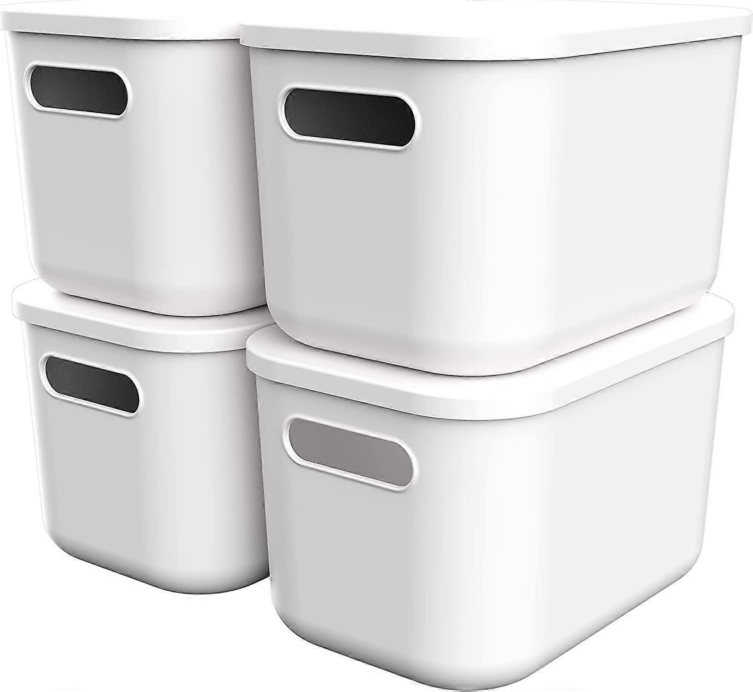 Boite de Rangement Design en Plastique Blanc Recyclable Ultra Rsistant | pour Bureau, Cuisine, Salle de Bain, Meuble, Penderie (7.5L, Lot de 4, Couver