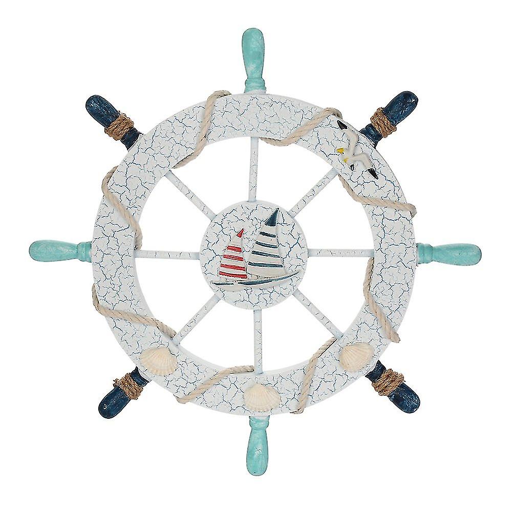 Boat Steering Wheel Decoration Wooden Double Sail Model