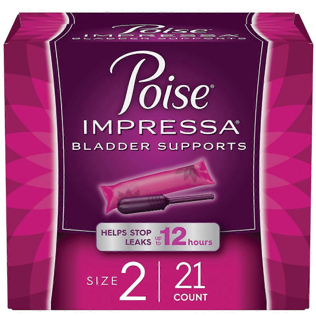 Insert Impressa easily into the vagina, like a tampon, to gently lift and support the urethra and to stop bladder leakage while allowing you to use the bathroom as usual. Whether you are running on the treadmill, running errands or running after kids, Impressa provides a comfortable, disposable incontinence solution that eliminates the need for bulky bladder control pads. Poise Impressa can be worn for up to 12 hours within a 24-hour period. Impressa always ships in a discreet box. Frequently Asked Questions Are Poise Impressa Bladder Supports right for me? Poise Impressa Bladder Supports are designed for women with Stress Urinary Incontinence (SUI) symptoms - meaning they leak urine when they laugh, cough, sneeze, dance or exercise. Do not use Poise bladder supports if you leak urine when you have a sudden need or rush to urinate. This is called Urge Urinary Incontinence, and Poise Impressa is not designed to treat these symptoms. How do I know which size is right for me? Start with Size 1 and work your way up. If the bladder support feels comfortable and you experience little or no leakage, that's the right size for you. How long and how often can I use Poise Impressa Bladder Supports? Impressa Bladder Supports can be worn any time of the day or night - as long as that time does not exceed 12 hours in a 24-hour time period. Can I use Poise Impressa Bladder Supports while I run, swim, workout, etc.? Yes. Insert Poise Impressa Bladder Supports into the vagina like a tampon for a comfortable pad-free experience and protection from bladder leaks during all of your activities. Are Poise Impressa Bladder Supports safe? Yes. Impressa Bladder Supports are the first over-the-counter pessary device and they are gynecologist-tested. Can I use my FSA? Yes. Poise products are FSA-eligible in the U.S only.