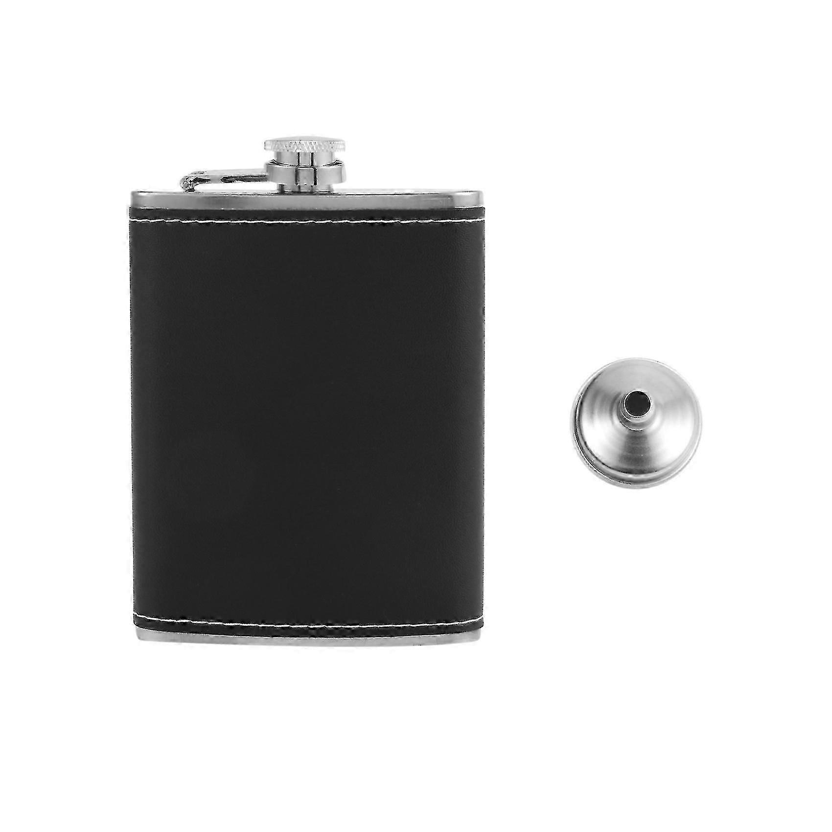 Pocket Hip Flask 8 Oz With Funnel Stainless Steel With Black Leather Wrapped Cover And Leak Proof - (haoyi)