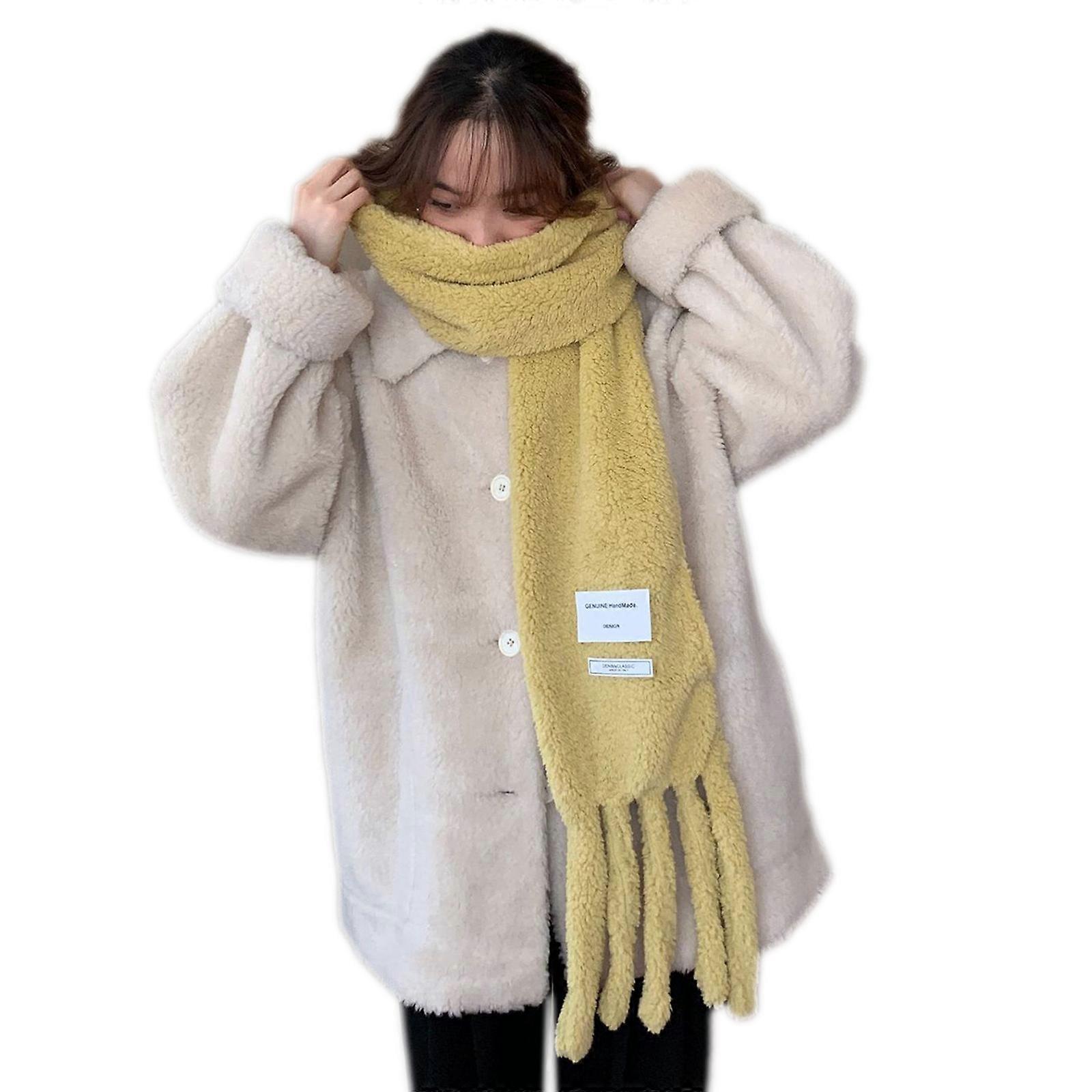 Plush Scarf With Pocket Neckerchief Scarfs With Tassels For Women Solid Color Octopus Scarf Super Female Long Yellow