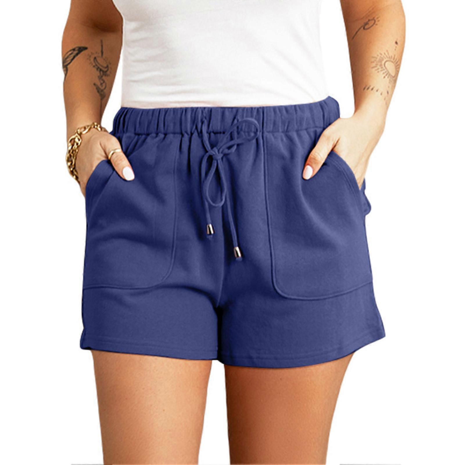 Women Casual Shorts with Pockets Fashionable Drawstring Soft Breathable Summer Shorts for Beach Party Gym Blue S