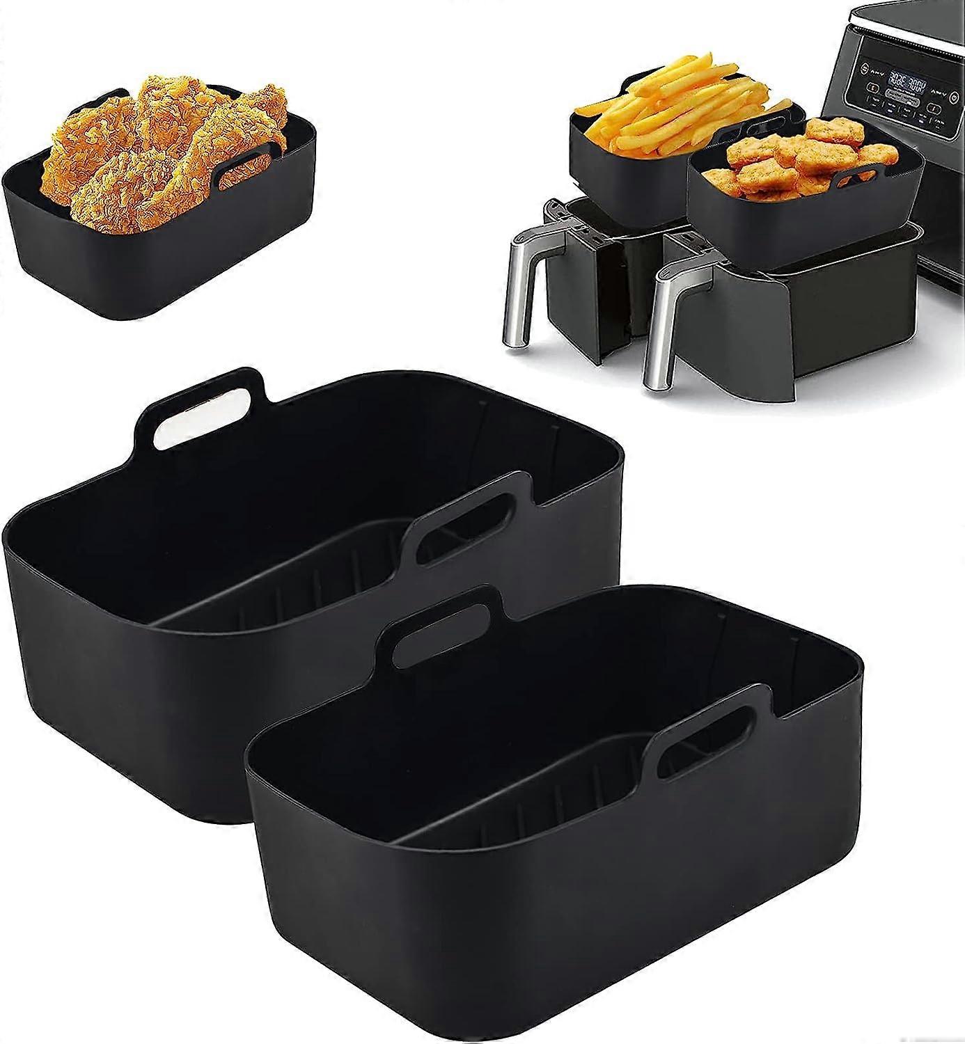 Pot en Silicone pour Friteuse Ninjas Dual Air, 2PCS Silicone Air Fryer Liner Double Air Fryer Silicone Air Fryer Basket, Air Fryer Rack Accessoire pou