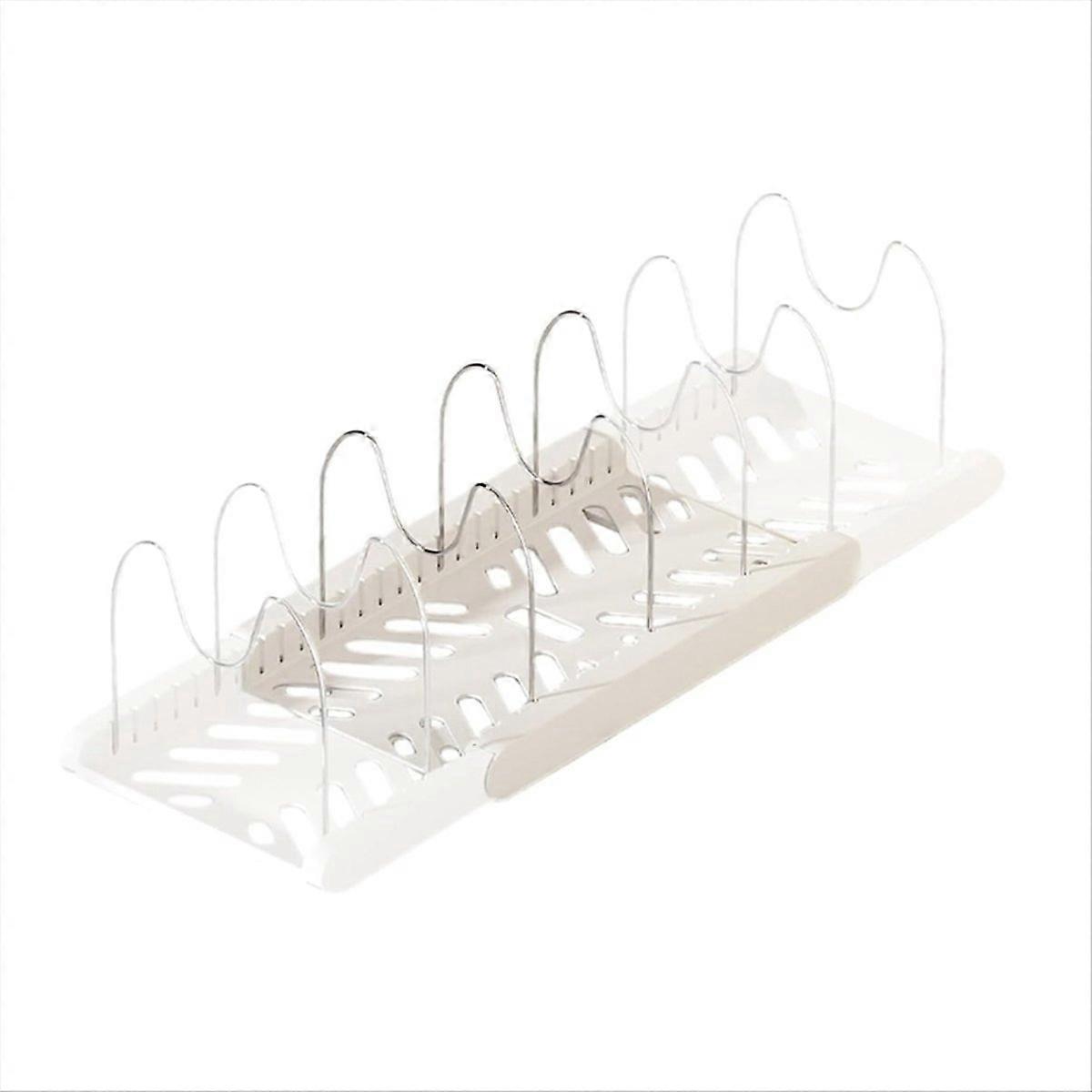 Optimal Space Utilization: This 7 Pots and Pans Organizer fits neatly under your cabinet, including lids. It's a comprehensive solution for enhancing kitchen cabinet organization. U Shape Groove Design:The U-shaped bracket on this professional pot and pan organizer is tailored for most pan and lid racks, providing robust support to securely hold lids in place without risk of falling. This makes it an ideal organizer for kitchen counters, enhancing organization and storage efficiently. Tip: The U-shaped design is especially suitable for storing pot lids with knobs. Flexible and Compact Design: It features large silicone feet for stability, perfect for any kitchen setup, optimizing space under cabinets or inside pantries. Storage Solution: This versatile organizer accommodates a wide range of cookware, from baking sheets to skillets, fitting seamlessly under-sink or in cabinet spaces to streamline your kitchen. Easy Assembly and Customization: Comes with a hassle-free setup that requires no tools. The package includes adjustable dividers and non-slip feet for stability. This setup ensures a tailored fit for all your storage needs. Color: As Shown Material: plastic Package Contents: 1 x Pot Rack Only the above package content, other products are not included. Note: Light reflection and different displays may cause the color of the item in the picture a little different from the real thing. The measurement allowed error is +/- 1-3cm.