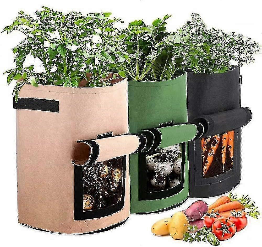 Potato Grow Bags, 3 Pack 10 Gallon Plant Growing Bags with Handles Garden Vegetable Growing,Nonwoven Planter