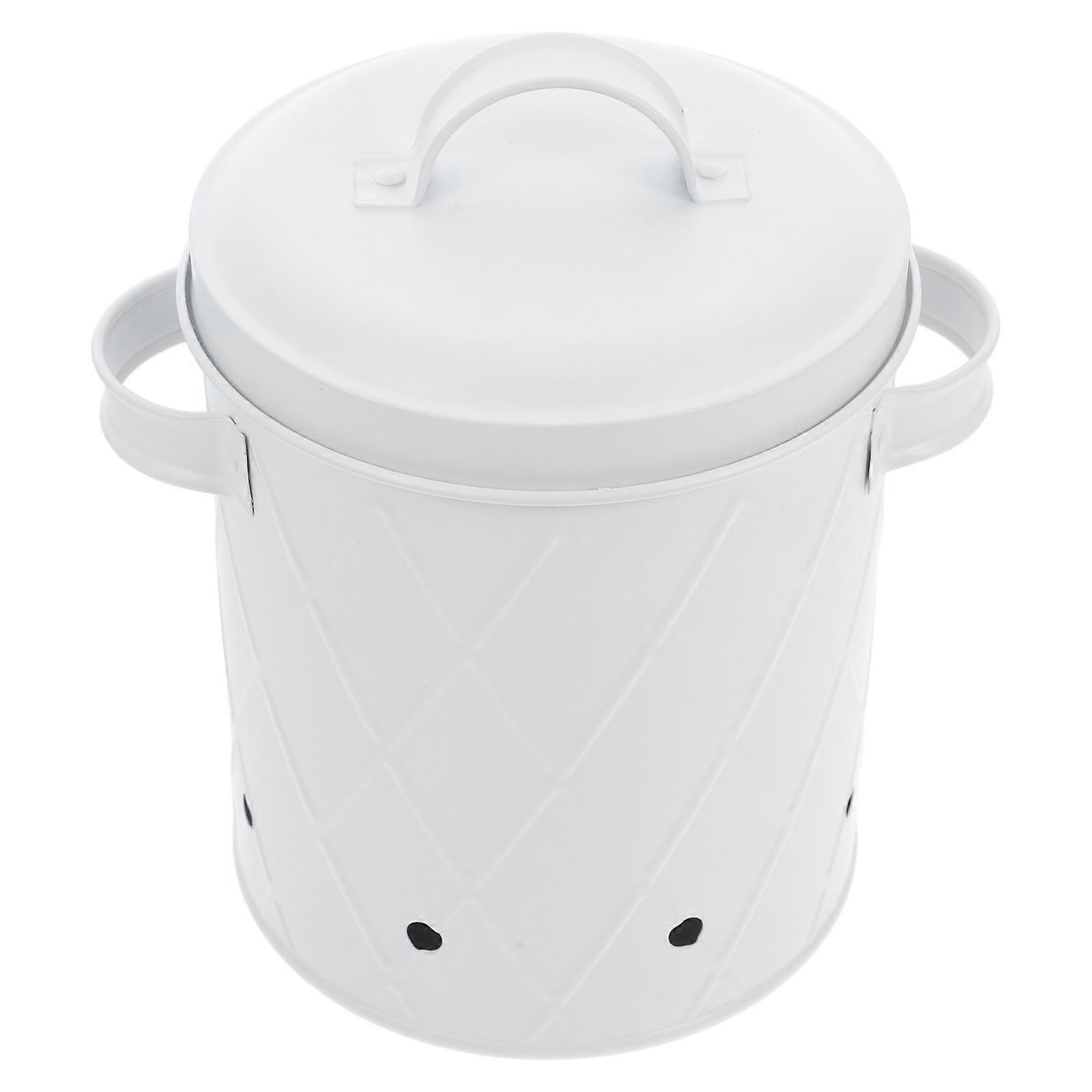 Potato Storage Container Metal Kitchen Canister for Home Kitchen Aerating Cylindrical White 19.50X17.50X13.50CM Vegetable Storage