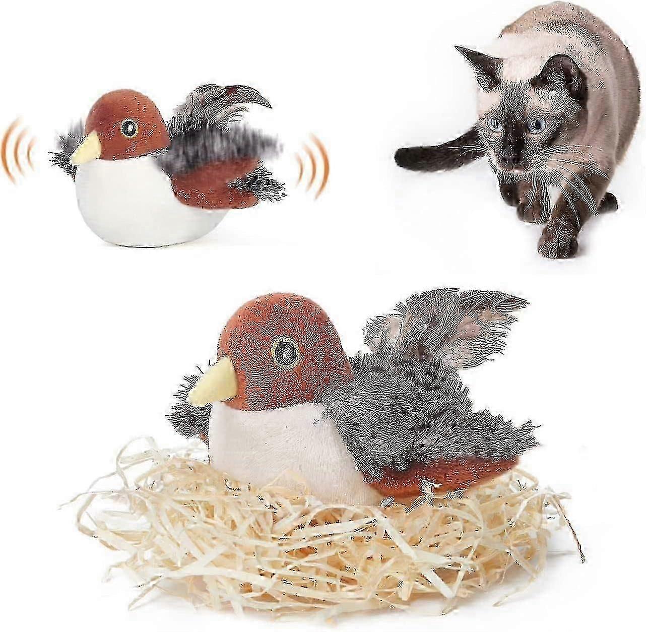 Potaroma Cat Toys Rechargeable Flapping Bird Sparrow, Lifelike Chirp Tweet, Touch Activated Kitten Toy Interactive Cat Exercise Toys for All Breeds