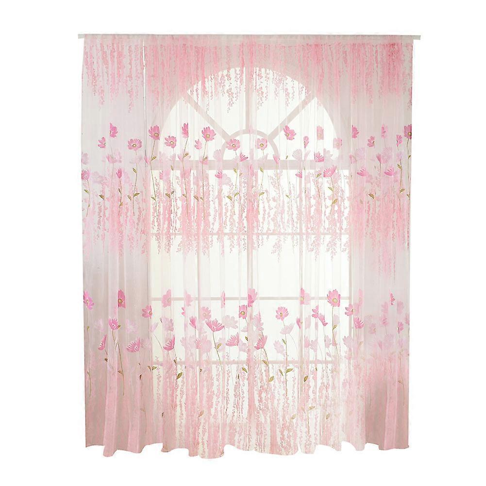 Polyester Floral Pattern Window Tulle Voile Curtain Bedroom Living Room Decor (Pink)
