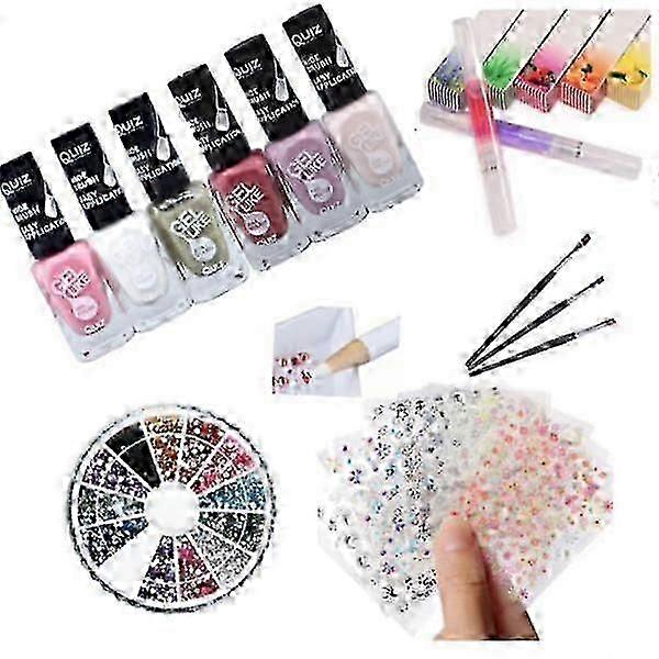 Complete Nail Decoration Kit with Polish, Rhinestones, and Multi-Color Stickers