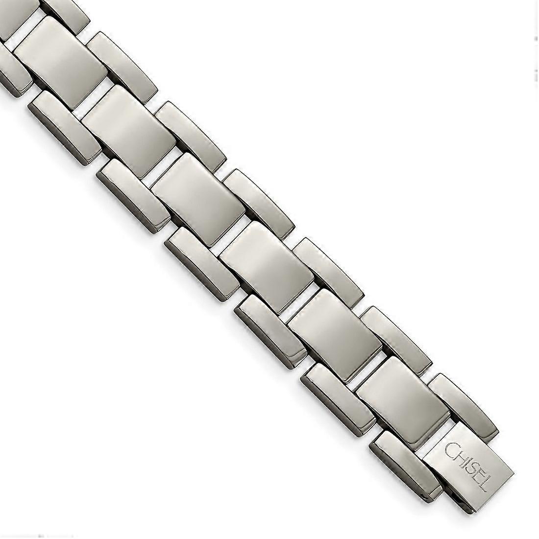 Titanium Polished Bracelet - 8.5 Inch - Measures 13mm Wide - In Titanium - Product Attributes: - Fold-over - - Width of Item: 13 mm - Length of Item: 8.5 in - Chain Length: 8.5 in - Chain Width: 13 mm - Clasp /Connector: Fold Over Catch - Finish: Polished - Chain Type: Link-Other -