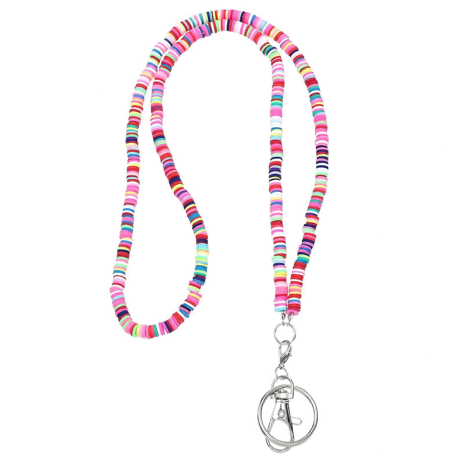 Polymer Clay Beaded Lanyard Long Chain Outdoor Activities Multi-colored Lightweight Key Card Holder 1Pack
