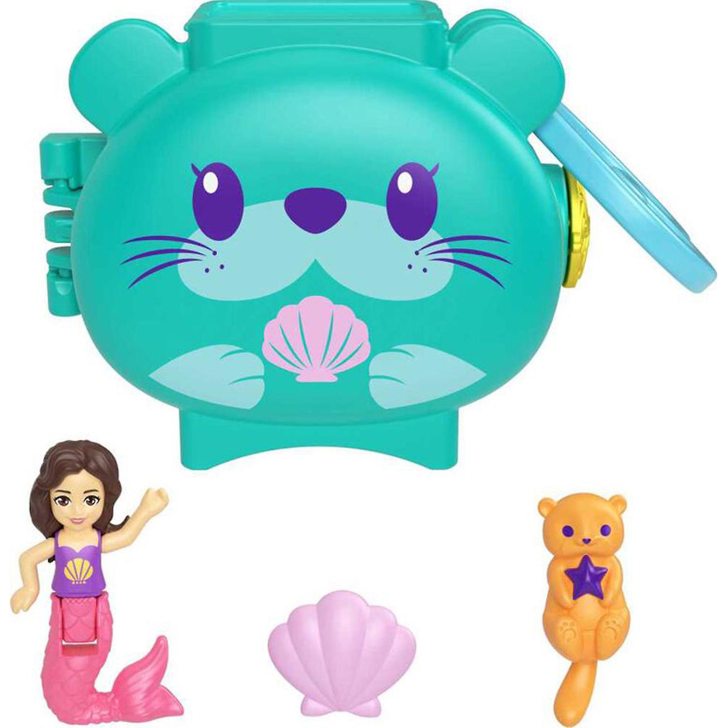 Polly Pocket Pet Connects Otter Stackable Compact Playset w/ Mermaid Doll and Otter Figure