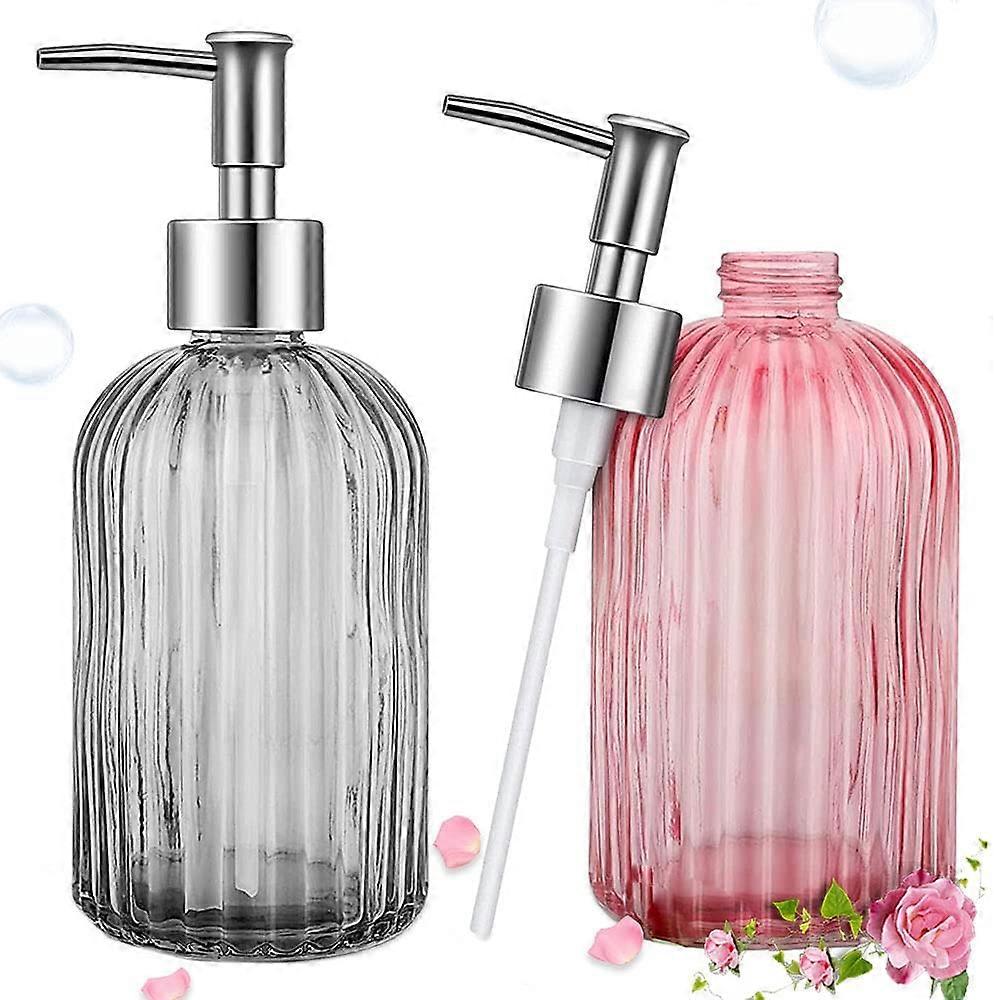 Liquid Soap Dispensers with Pump, 2 Pieces Refillable Glass Liquid Soap Dispensers, Soap Dispenser(Gray, Red)