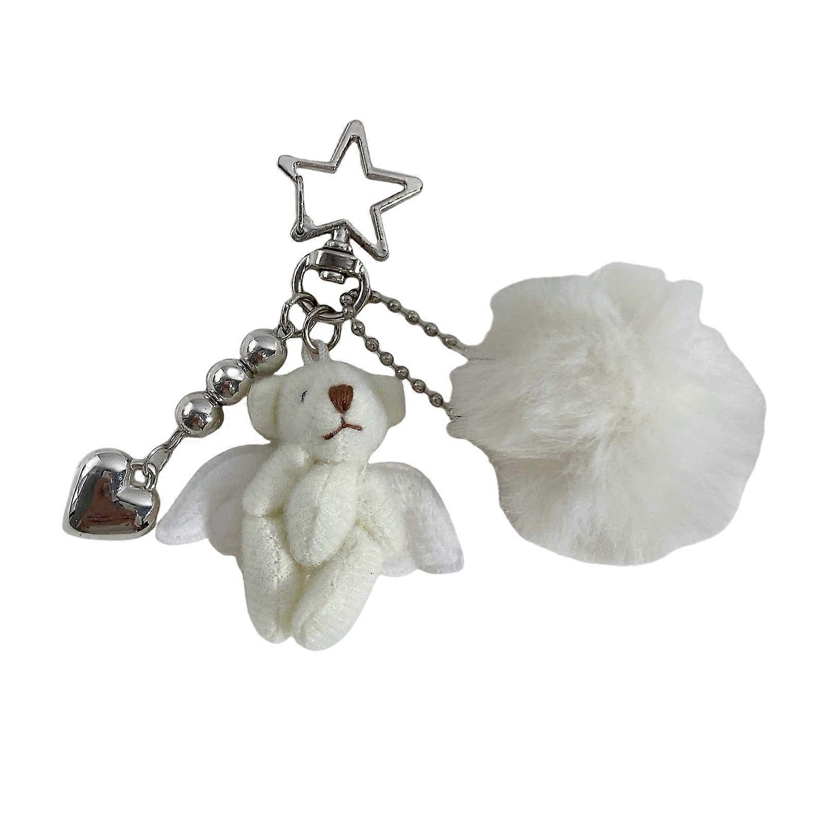 Bear Hanging Charm with Pompoms Lovely Animal Bag Pendant Fashionable Plush Keychain Handmade Gift for Children White