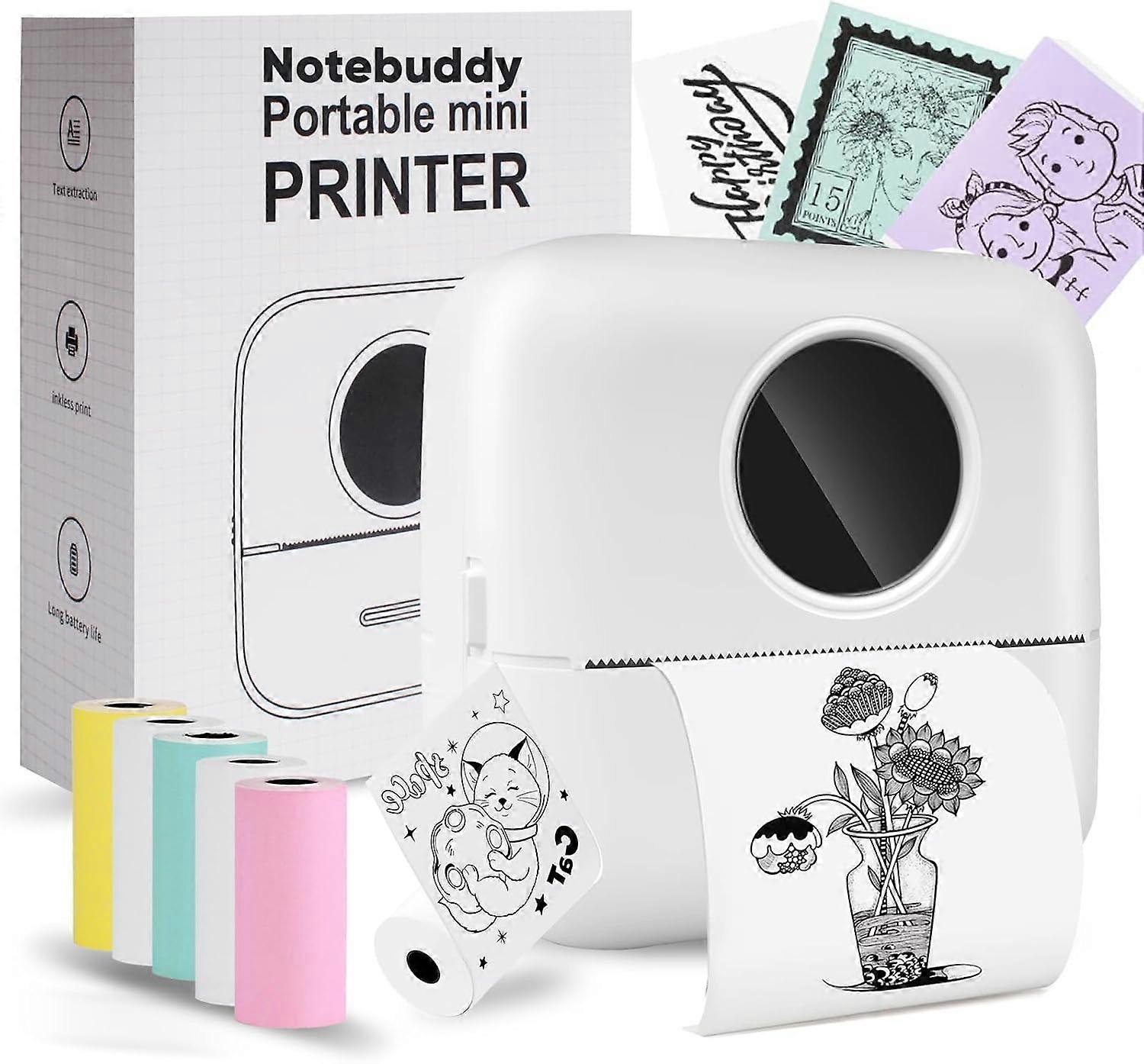 Portable Inkless Pocket Bluetooth Thermal Printer with 5 Rolls Paper for Journal/DIY Scrapbooking/Travel/Notes White