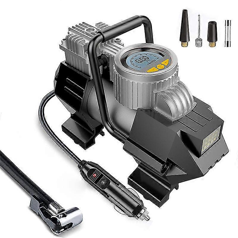 Portable Air Compressor Pump 100 Psi, Digital Tire Inflator 12v Dc Meter With Extra Nozzle Adapter And Fuse