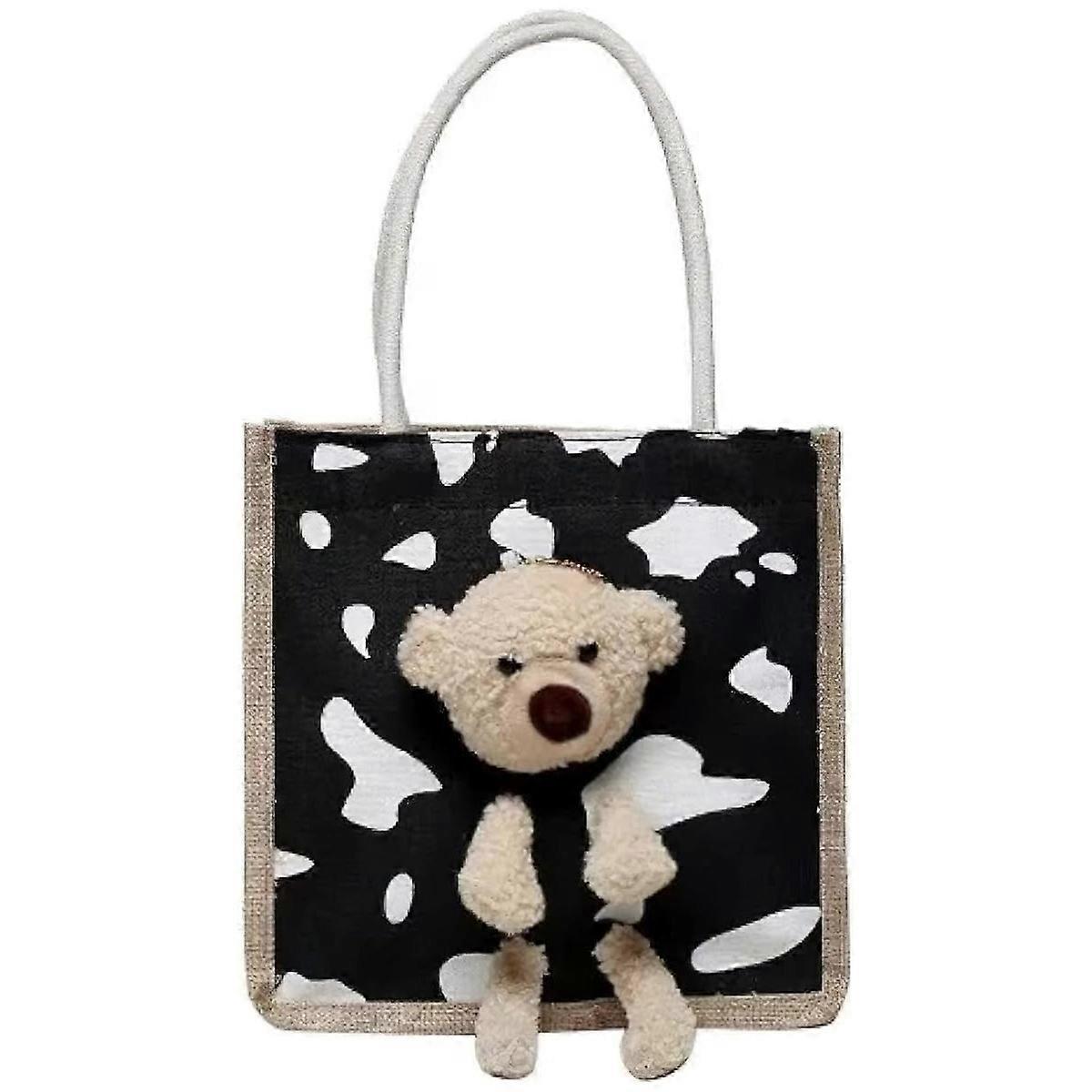 Portable Canvas Tote Bag Women Girls Multi Purpose Cute Bear Handbag for Outdoor Activity Picnic