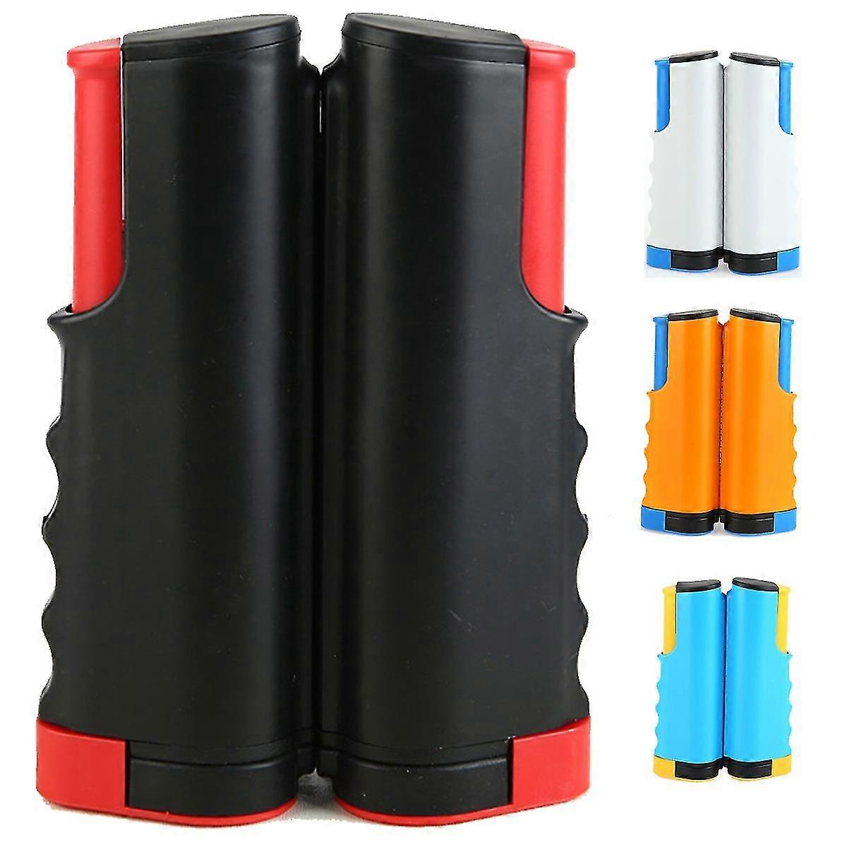 Product Details Adjustable length for playing table tennis on any surface, expandable up to 170cm/67in, a full size table tennis table for practice, training and competition Easily attaches for quick setup and takes off in seconds. Just press the bracket button to install, quickly pull the net to any length on the table, and start the fun game in no time. Fits tables and surfaces up to 5 cm thick and clips to any surface: play ping pong in your office, dining table, kitchen table. Automatically retracts to roll up for compact storage and transport anywhere. Size: universal Weight: 700g material: plastic Color: black red, blue yellow, gray blue, orange blue Quantity: 1pcs table tennis stand