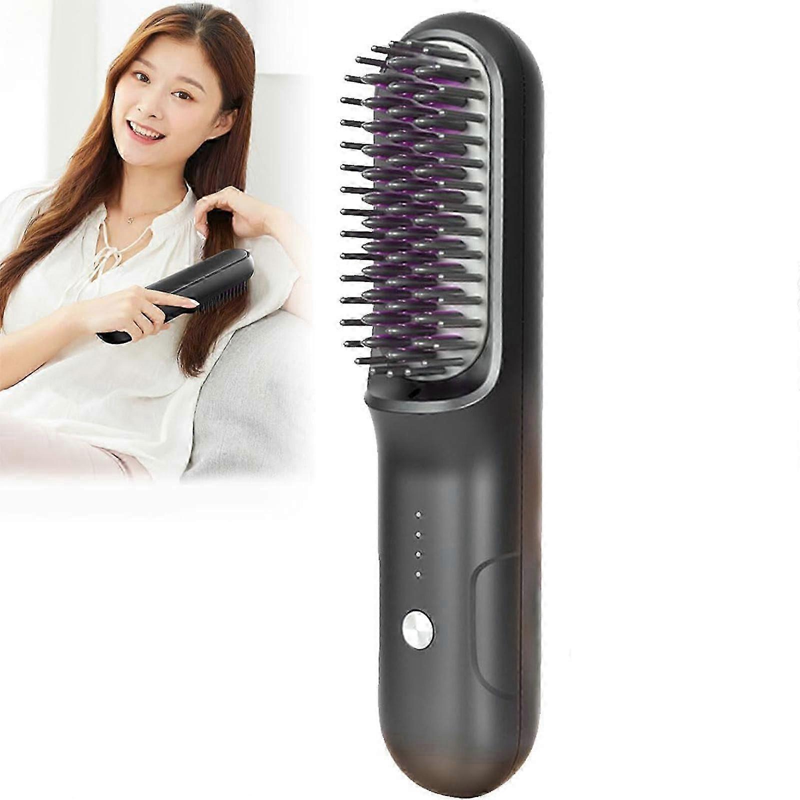 Portable Cordless Negative Ion Hair Straightener Brush, Cordless Curling Iron, 30s Hot Comb, 3 Temp Settings Anti-Scald, 3200mah Battery Capacity