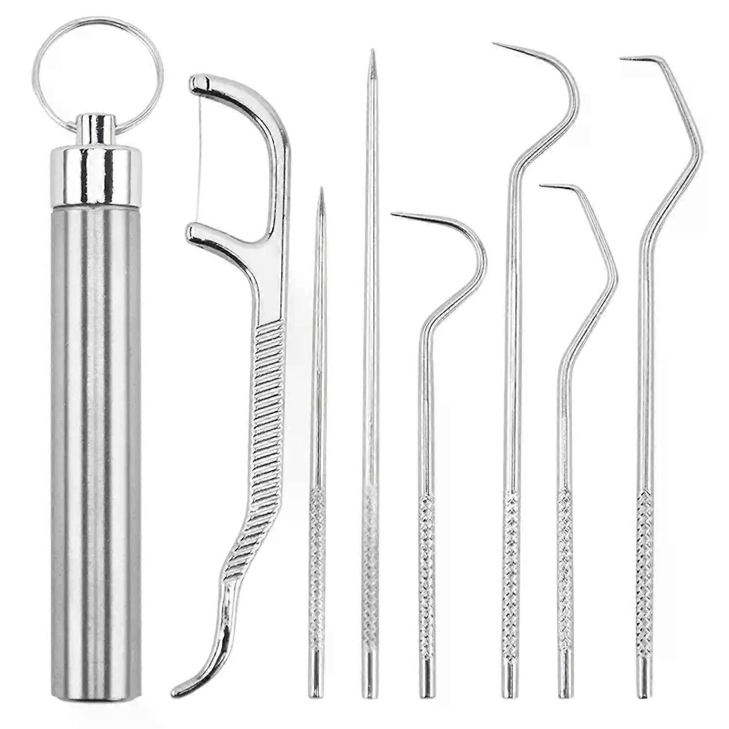 Portable Stainless Steel Toothpicks Pocket Set with 7pcs Durable Reusable Metal Toothpicks Compact Tooth Cleaning Kit Includin