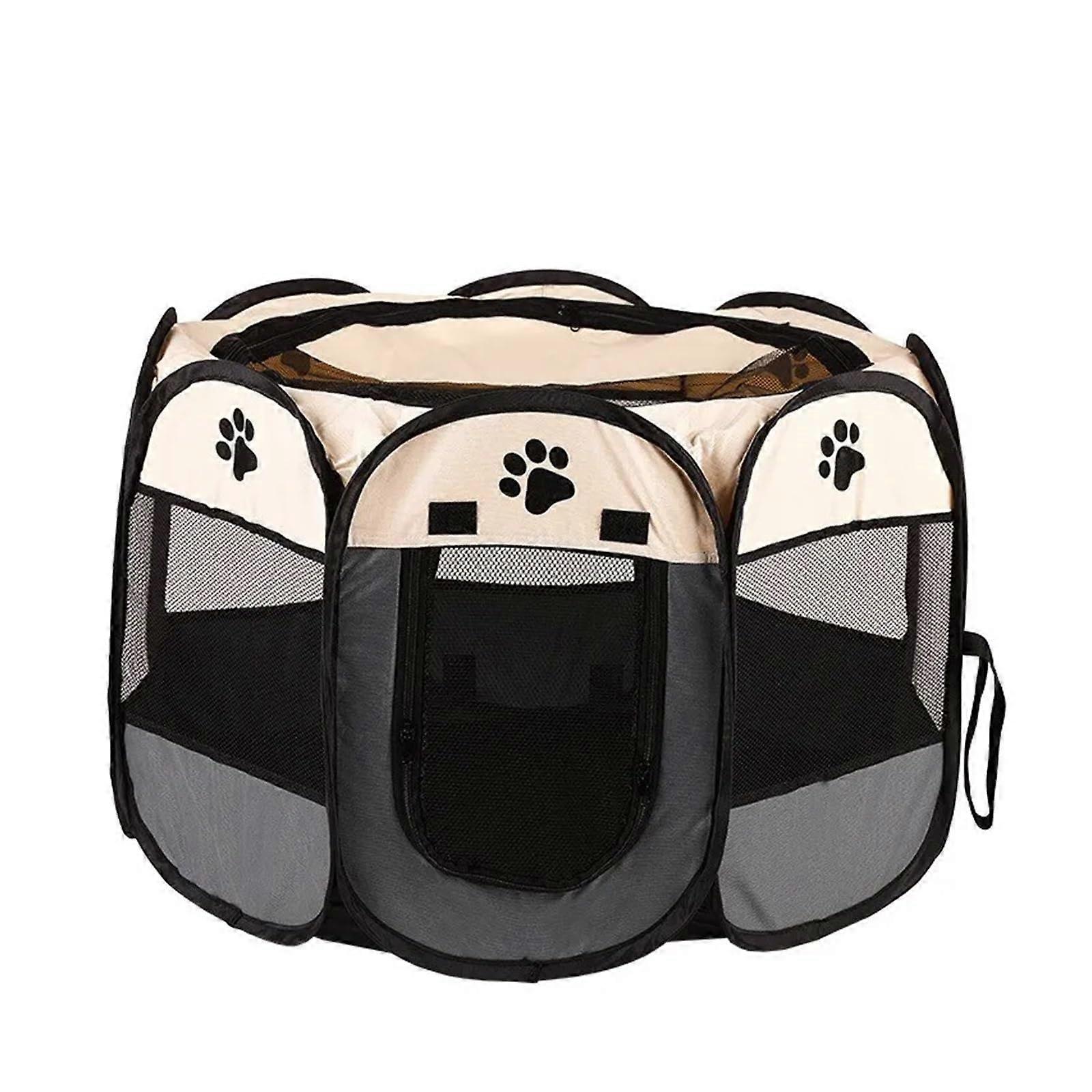 Portable Dog House Foldable Pet Tent Kennel, Outdoor Dog Kennel, Octagonal Fence Shelter, 73x73x43cm, White Gray