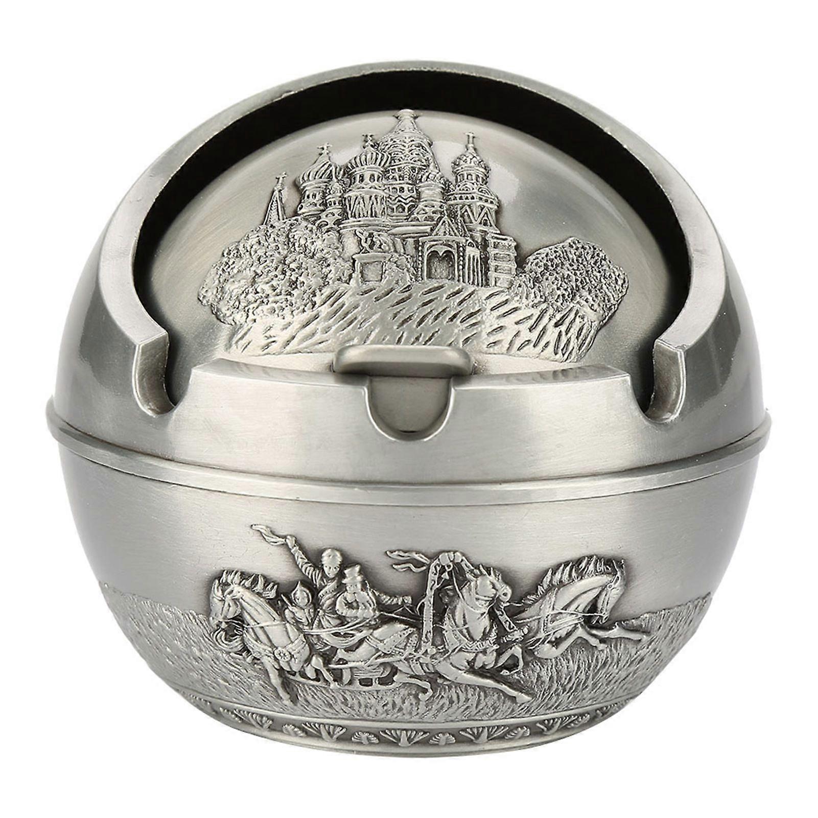 Portable Travel Car Ashtray Round Ball Stamped Pattern Gift Home Decoration (#01)