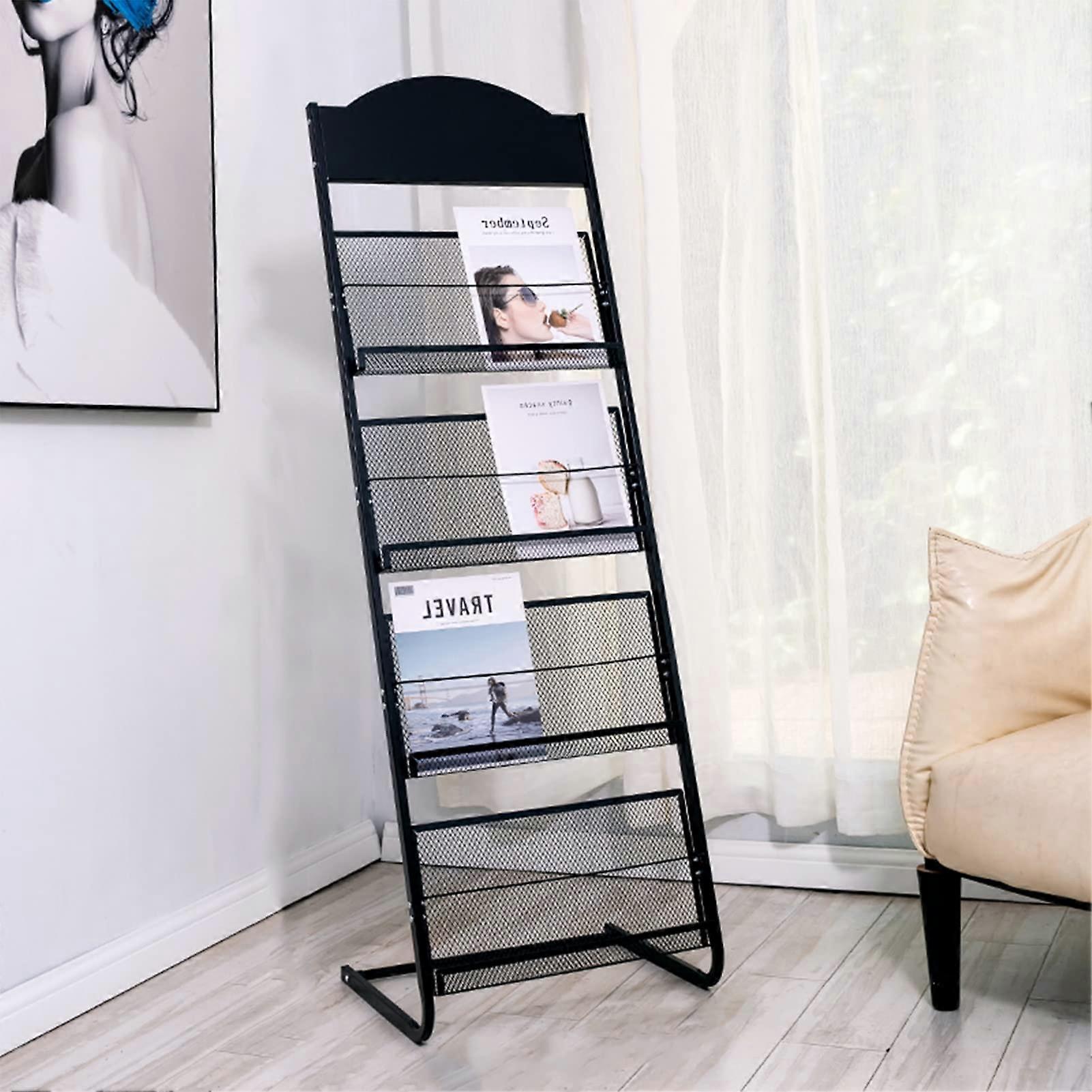 Magazine Rack with Portable Brochure Stand, Freestanding Black Magazine Holder for Office, Waiting Room, Living Room Storage