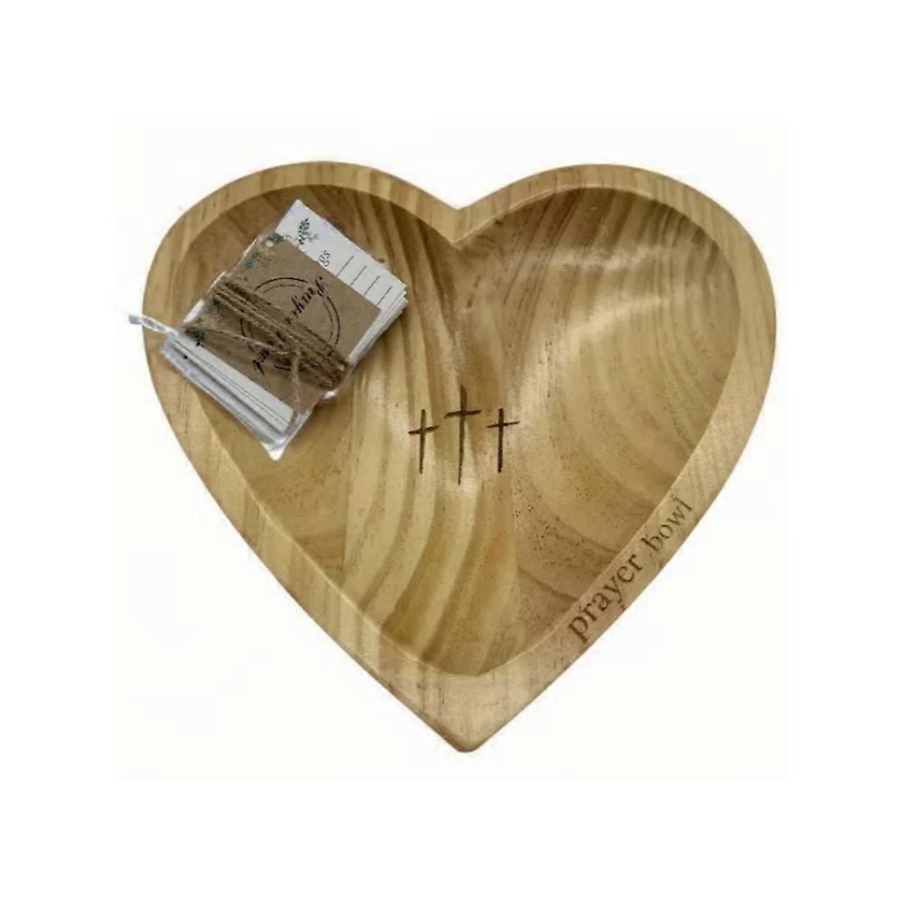 Portable Heart Shaped Bowl, Heart Prayer Bowl with Cards Wooden Prayer Bowl