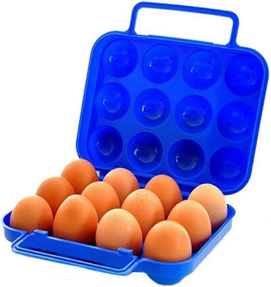 Portable Plastic Egg Carton 12 Fridge Storage Box Travel Camping Kitchen (blue)