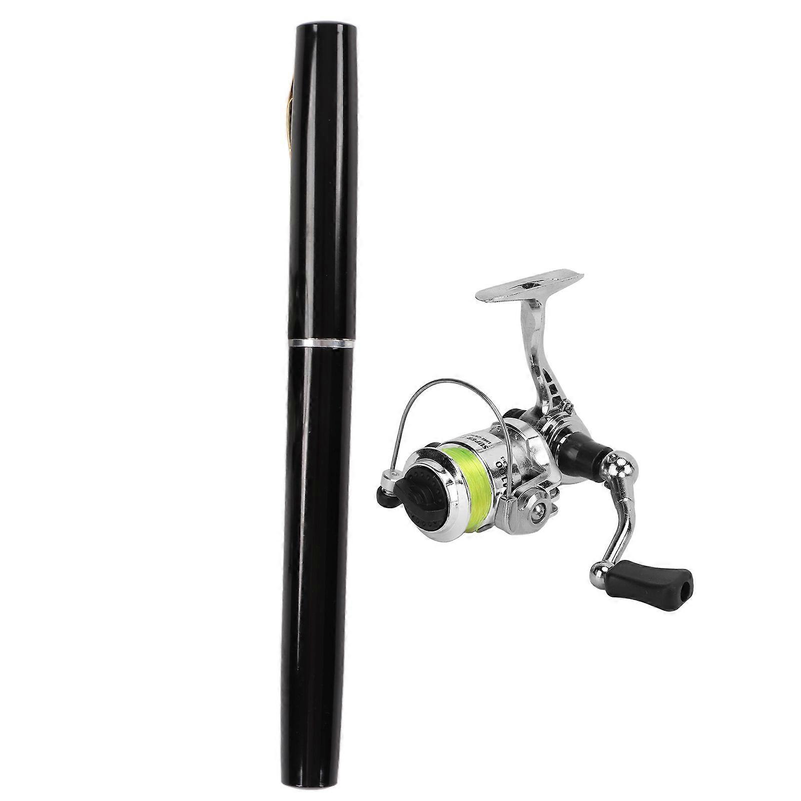 Portable Mini Pen Shape Fishing Rod Pole Pocket Retractable Fishing Rod with Reel WheelBlack