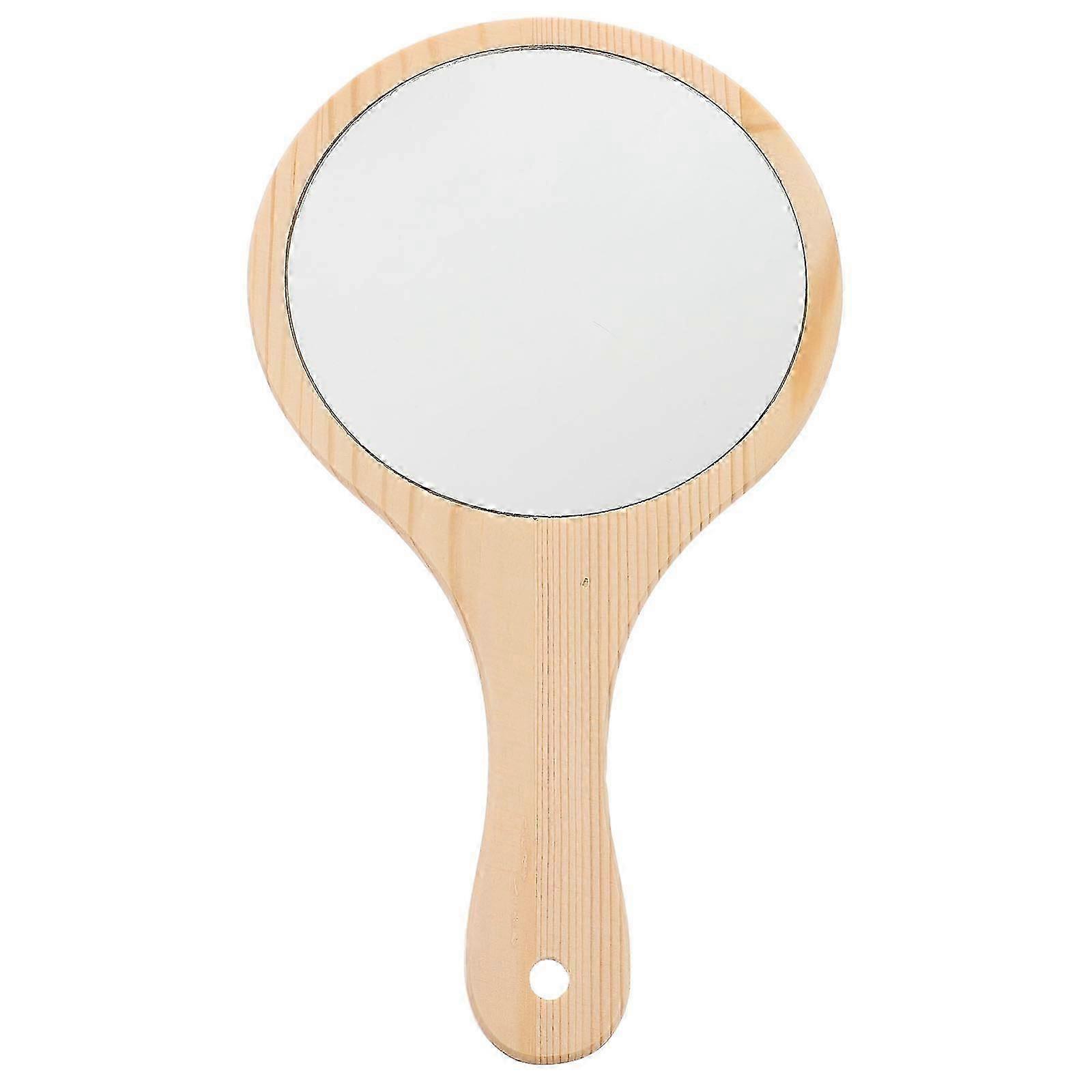 Portable Makeup Mirror Wood Handle Creative Women Travel Cosmetic Mirror