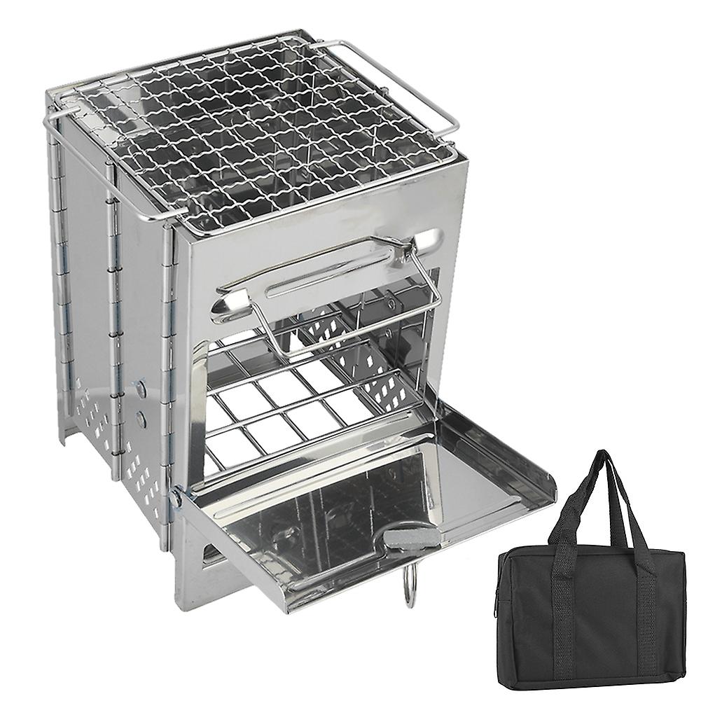 Portable Outdoor Camping Wood Stove Folding Stainless Steel Wood Burning Stove Square