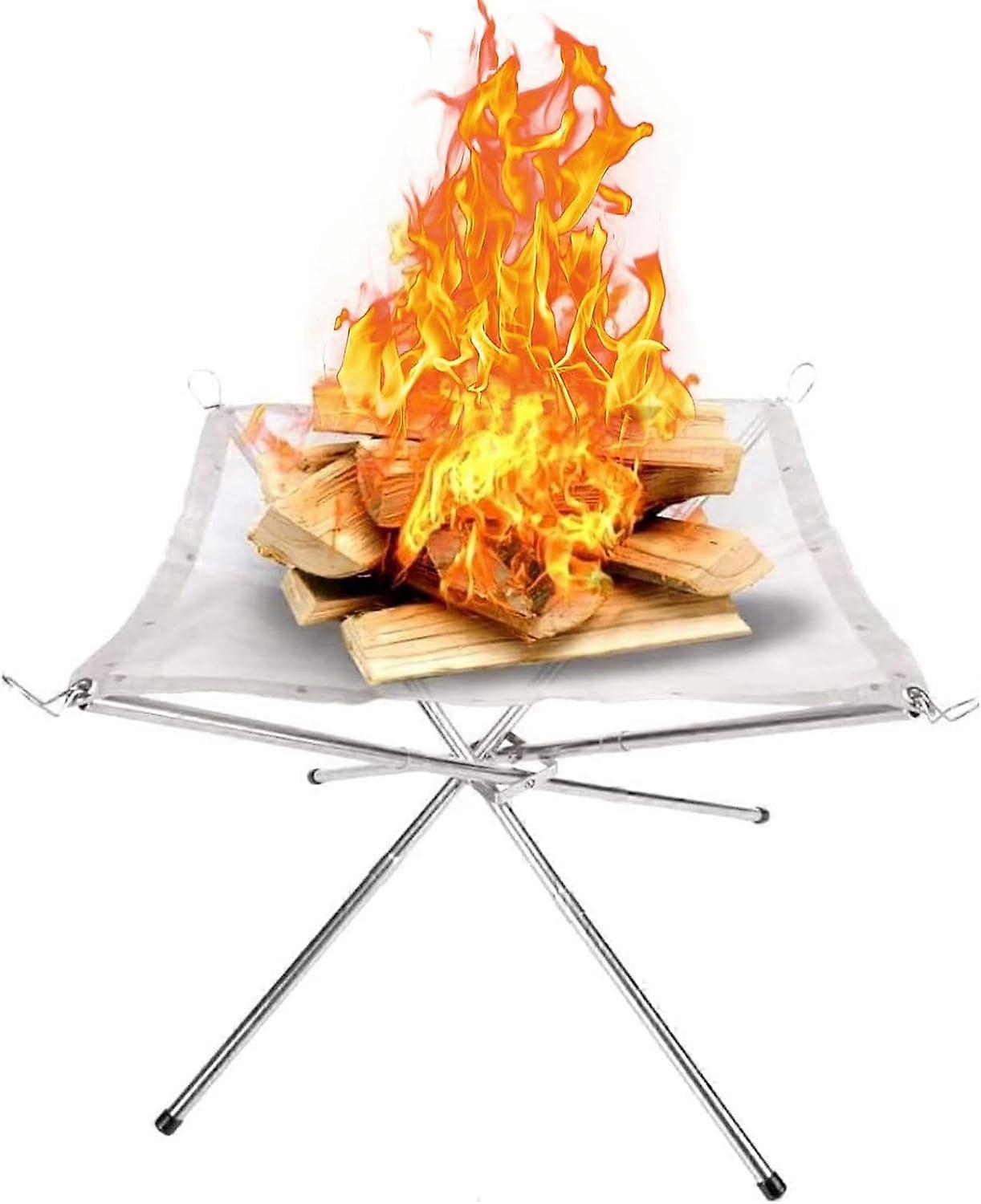 Portable Outdoor Fire Pit, Foldable Steel Mesh Fireplace with Carry Case, Patio, Camping, Backyard Use