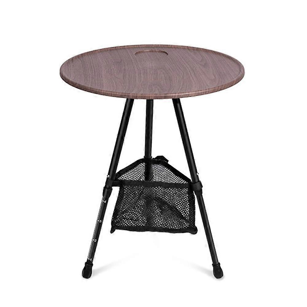 Portable Outdoor Folding Round Table 5 Adjustable Height Levels Storage Bag Patio Backyard Dining Coffee Wood Color