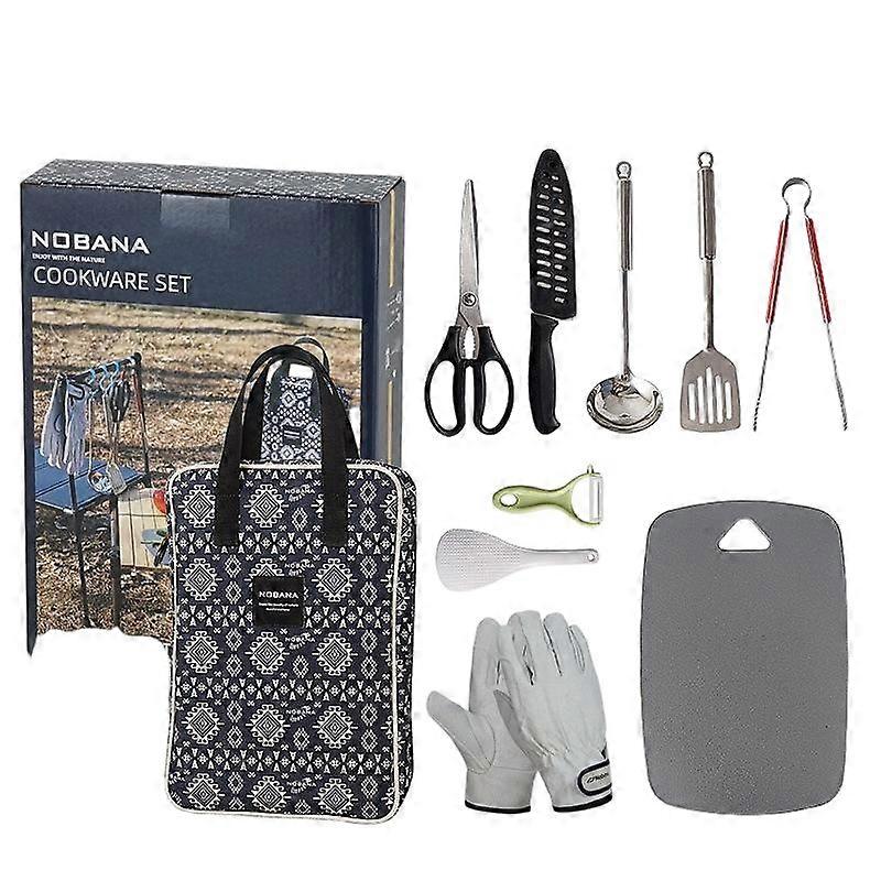 1. This is a cookware set specially designed for outdoor camping and RV travel. It is made of stainless steel, which is sturdy and durable. 2. This cookware set has an exquisite design, featuring portability and ultra-lightweight. It only weighs 1.1 kilograms, making it easy to carry. Its split design allows for flexible use and has a dual-purpose function to meet the needs of different scenarios. In addition, it is equipped with a handle design for easy access at any time. 3. This set has a rich configuration, including a knife, a cutting board, a soup spoon, a spatula, a pair of scissors, a barbecue tong, a rice spoon, a pair of gloves, a peeler, and it also thoughtfully comes with a storage bag to neatly store all the tools and prevent them from getting lost. 4. It is suitable for 3 - 4 people. Whether it is a small outdoor picnic gathering with friends or a family RV trip, it can easily meet the cooking needs. It has an authorized self-owned brand, ensuring its quality. Bring it along and start your outdoor gourmet journey!