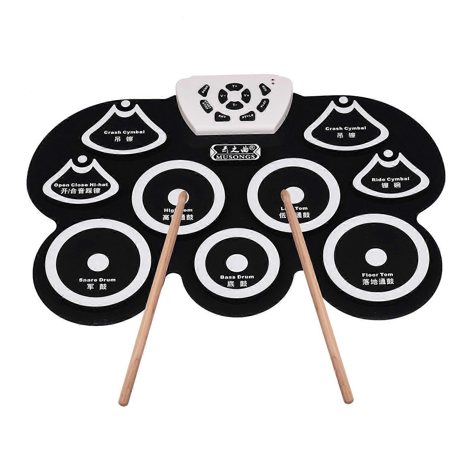 Portable Foldable Silicone Electronic Drum Pad Kit 40x27cm Black