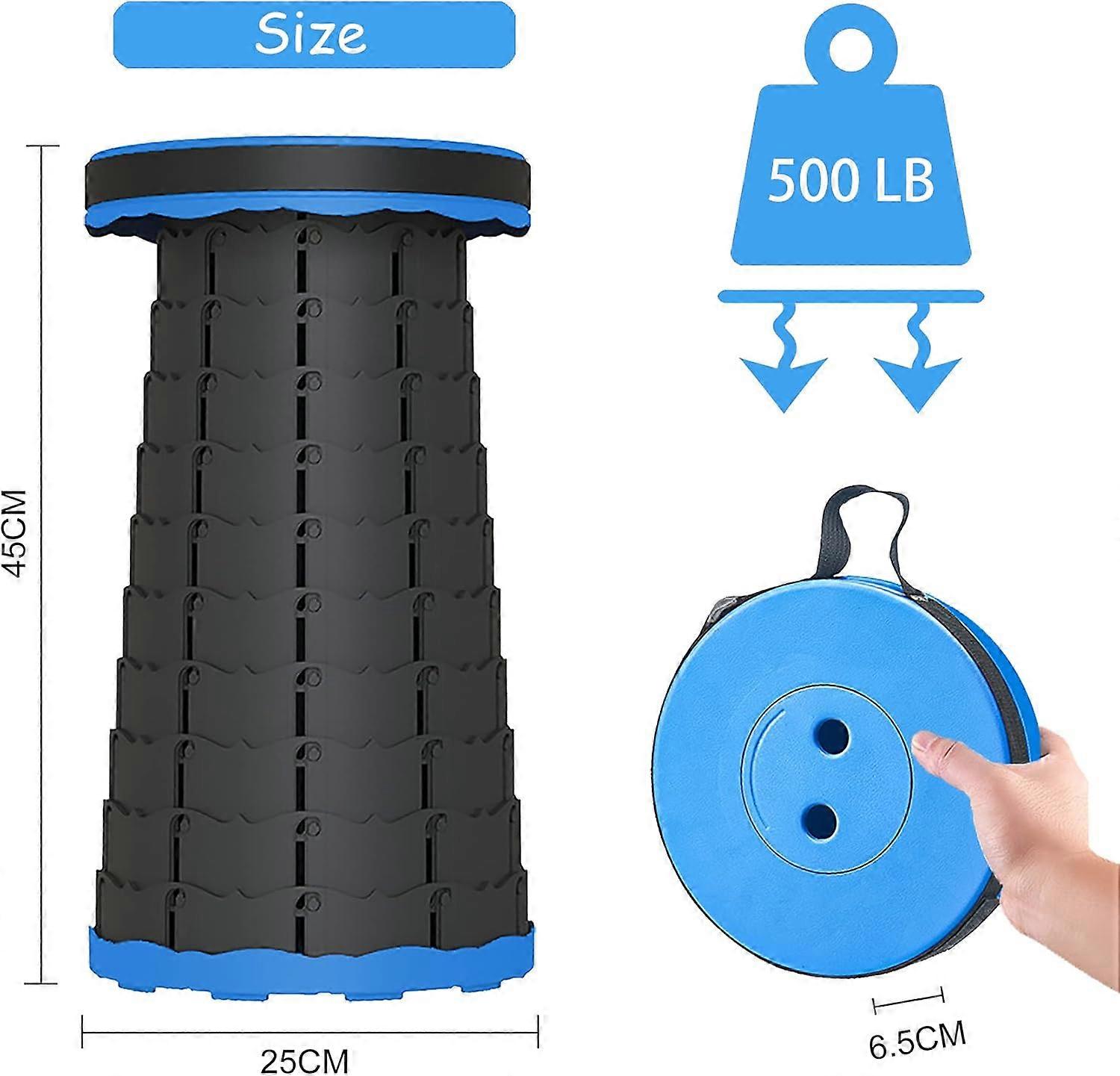 Multifunctional Portable Folding Stool: Folding stool is sturdy and small in size (only 6.5CM thick when folded, 45CM when unfolded), you can easily fold it, easy to carry and take it with you wherever you go. Portable folding stool is suitable for a variety of scenes, such as picnic camping/field fishing/queuing, etc. Portable retractable stool allows you to enjoy and relax anytime, anywhere. Height Adjustable Camping Stool: The height of telescopic stool can be adjusted freely (6.5CM~45CM), you just need to pull and turn gently to adjust the height you need. Foldable stool weighs 1kg when stored, which is very convenient to carry and store without taking up space. Retractable stool can hold up to 500lb and you can enjoy the convenience brought by camping stool outdoors. Can...