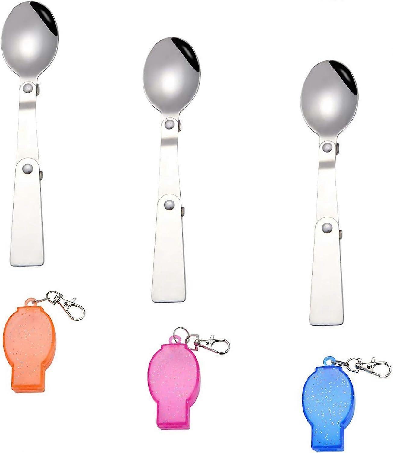 Portable Foldable Stainless Steel Spoon,Outdoor Picnic Camping Tableware Traveller Spoon(Blue, Pink, Orange)(3 Pcs )