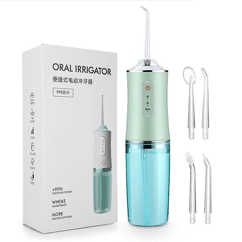 Product Details:<br> <br> Dental Oral Irrigator Water Flosser Portable Teeth Cleaning Machine 220ml Irrigator USB Scaler Dental Irrigator For Teeth<br> <br> Product Name: Oral Irrigator<br> <br> Certification: CE / FC / FDA<br> <br> Oral Irrigator Noise: Low Noise<br> <br> Oral Irrigator Use Time: At Least 2 Years<br> <br> Water Tank Capacity: 220ml Water Tank<br> <br> Power Adapter Input Voltage: Compatible With Global Voltage(100-240V)<br> <br> Battery Type: Rechargeable 1200mAh Lithium Battery<br> <br> Charging Mode: Convenient Portable USB Charging<br> <br> Charging Time: 4-6 Hours<br> <br> Working Time Of Fully Charged: 20-30 Days (Work Twice Each day)<br> <br> Water Flosser Size: 28.1 * 6 * 6 cm<br> <br> Dental floss Weight: 0.4 kg<br> <br> Service:<br> <br> <br> The oral irrigator is 3 modes available including soft, strong and pulse mode. By using it 2-3 times a day, you can prevent tooth decay/gingival atrophy/bleeding gums/dental calculus, etc.<br> <br> The dental water flosser can efficiently reduce food residue, germs and dirt, helping people improve oral condition maintain oral health, ideal for people who have dental implant, or wear braces or retainer;<br> <br> The water jet toothpick is IPX7 full body waterproof and designed with a 220ml capacity water tank, which has a good lifespan and is convenient for daily use without a second fill needed;<br> <br> High Volume Water Tank<br> <br> Smart power-off protection: the device will auto shut down in 2 minutes without operation.<br> <br> 2 Colors:<br> <br> Package Include:<br> <br> 1* Water Flosser<br> <br> 4* Cleaner Heads<br> <br> 1* User Manual<br> <br> Warm Tips:<br> <br> 1. If you want to use with water, mouthwash or anti-bacterial rinses, follow the suggestions of your dentist or hygienist.<br> <br> 2. Don't face to your eyes when you turn on the Water Flosser.<br> <br> 3.When using the flosser,people lean forward 40 degrees, Press the start button only after the nozzle enters the mouth, the lips naturally close, bead lips leave a gap for the discharge of liquid,and then open the flosser, so that it will not splash.<br>