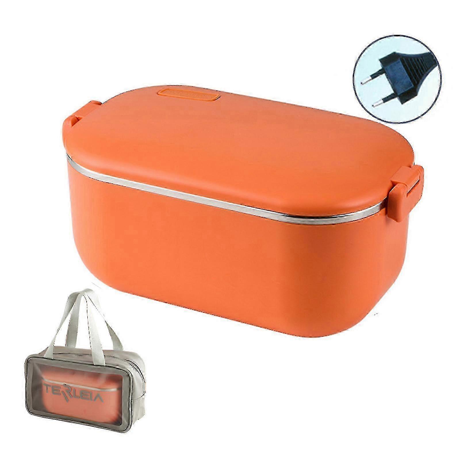 Portable Leakproof Stainless Steel Electric Lunch Box with Bag EU Plug Orange