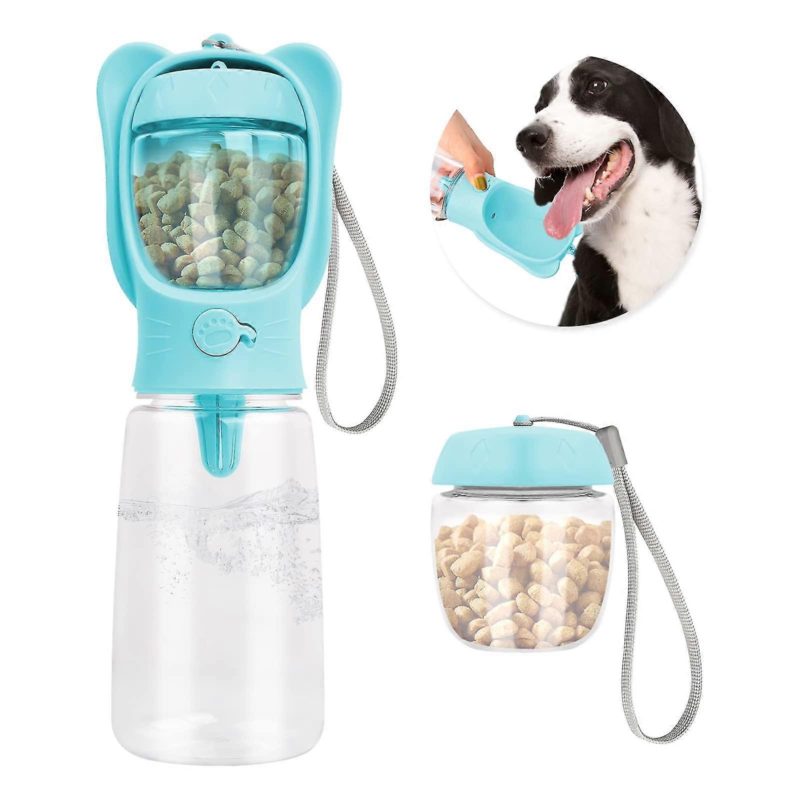 Portable Dog Water Bottle 550ml, Multifunctional Pet Water Bottle With 80ml Food Cup, Pets Travel Bottle, Puppy Water Dispenser Gourd