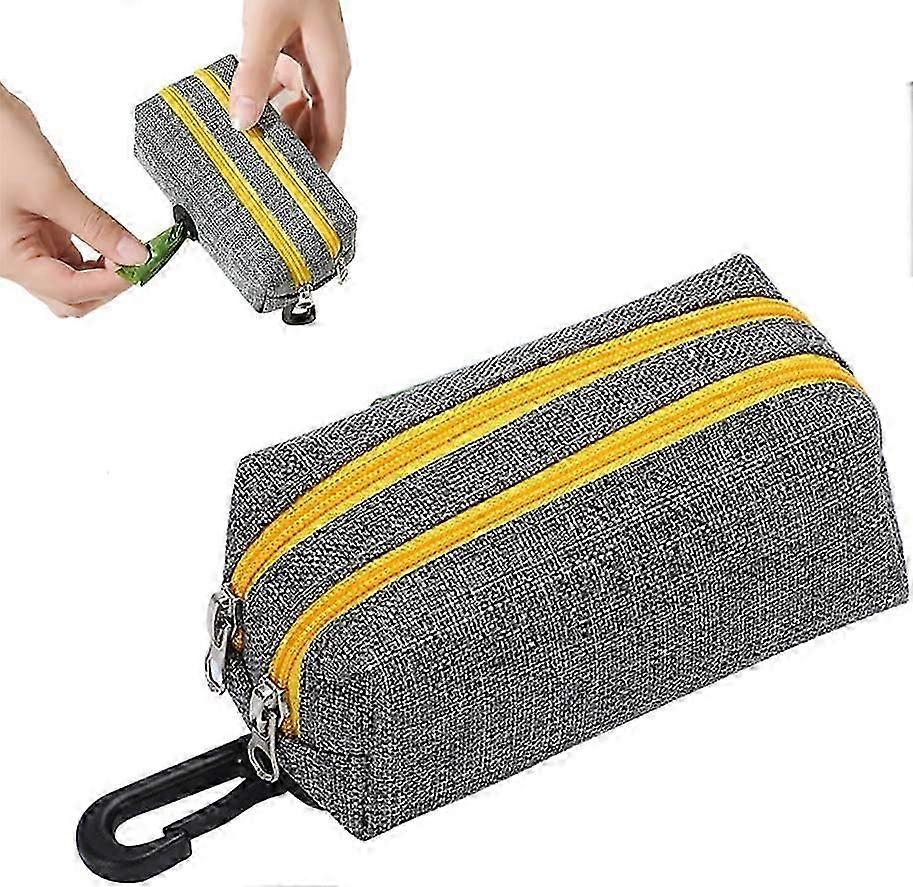 Superior Materials: This pet trash bag is made of 600D Oxford cloth, beautiful in appearance, durable, and double zipper opening and closing can prevent items from being lost.Compact Portable: The size of the poop bag divider is about 12*6*5cm/4.72*2.36*1.97inch. You can fit a roll of poop bag/keys/coins or some dog-training snacks. Very small and light, it is the perfect accessory for walking the dog.Easy to Use: It adopts metal double zipper design, which is smooth and easy to open. The specially designed star-shaped outlet is very suitable for pulling out the bags one by one. It can hold your poop bag tightly in place until you need to use another one.Powerful Velcro: Our dog poo bag dispenser provides you with a variety of carrying options. The Velcro can be firmly and safely fixed to your favorite traction rope handle and collar, which is very convenient and practical.Hook and Loop Connection Design: The durable hook can be easily connected to any pet leash, safety belt, waist belt or running belt. The hooks on the dog trash bag holder can be easily hung on pet carrying bags, hiking backpacks, strollers and wall hooks.Note: Due to manual measurement, the size and weight may have a certain error. Due to the difference between different monitors, there may be a slight color difference existed.Color: gray-yellowWeight: 50gSize: length 12cm, width 5cm, height 6cmPackage includes: 1pc* pet waste bag