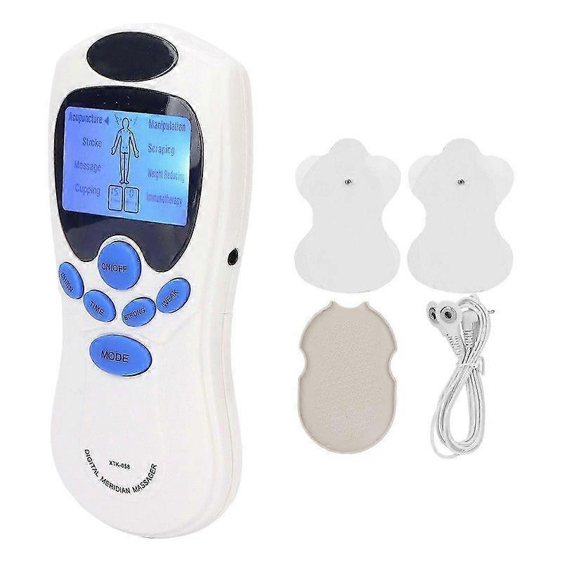 Item Type: Electronic Muscle MassagerMaterial: ABSPower Supply: 3 x AAA Batteries (Not Included)Applicable Parts: Shoulder, neck, waist, back, leg, arm, foot, etc.Efficiency: Dredge systemic meridians, improve cervical spondylosis, improve lumbar muscle strain, relieve systemic pain.Applicable Diseases:(1) All kinds of acute and chronic diseases, hypertension, rheumatism, arthritis, periarthritis of shoulder, lumbar muscle strain, stomachache, abdominal pain, neuralgia, toothache, irregular menstruation, impotence, sexual dysfunction, etc.(2) Physical discomfort, low resistance, general fatigue, neurasthenia, back pain, shoulder and neck pain, leg pain, etc.(3) Beauty effect, weight loss, improve postpartum abdominal relaxation, acne removal, etc.Product Maintenance and Storage Methods:(1) Cleaning the Host: Wipe with a soft cloth, do not use thinners, gasoline, or other liquids.(2) Clean the Electrode: Wipe the dirt on the electrode with a wet cloth or rinse with water. It can be reused after drying.(3) Storage: Place the instrument away from children, and keep it away from humidity, high temperature, direct sunlight and water splash.Safety Measures:Do not use with the following medical electronic devices:(1) People who use heart rate adjusters and implanted medical electronic devices.(2) People who use artificial heart-lung pacemakers and life-extending electronic devices.(3) Those who use electrocardiogram and medical electronic devices.At the same time, the use of medical electronic devices may also lead to the risk of misoperation.Any of the following situations should be used with caution:(1) Malignant tumor(2) Infectious disease(3) Menstrual period and pregnant women(4) Heart disease cannot be placed in the heart(5) Fever over 38(6) Abnormal skin sensitivity(7) Do not use this product in the following parts of the body: the mouth, eyes, perineum and the injured place with skin wounds(8) It shall not be used with other instruments or linimentHow to Use:(1) The output socket is connected with the output electrode.(2) LCD Display Screen: Synchronous display state(3) Power Button: Start Close the machine(4) Function Selection Key (Mode Key):The machine has eight modes of Tuina, acupuncture, beating, massage, cupping, scraping, slimming and immune system. Press this button to switch modes.(5) Timing Key: This key is increased by 5 minutes each time, which can be increased to 15 minutes.(6) Increase Strength Key: Increase strength processing, press once, increase one strength unit, the maximum is 15.(7) Decrease Strength Key: Decrease strength processing, press once, decrease one strength unit, the minimum is 0.Preparation Before Use:(1) Gently pull open the battery lid;(2) Put the battery in, pay attention to the positive and negative positions (Not include the battery);(3) Tightly covered the battery lid.Preparation of Electrode:(1) Tear the protective paper on the electrode.(2) After use, paste the protective paper again.Electrode Position:(1) Dry the skin part with a wet towel for physiotherapy and perspiration removal:(2) Apply the electrode directly to the physiotherapy site.(3) The electrodes need to be placed at the same time, or physical therapy cannot be performed, and the symmetrical placement of the electrodes is not required.Note:(1) During treatment, if you want to change the physiotherapy mode, the strength will be automatically reduced to 0, at this time you can adjust the appropriate strength.(2) In th